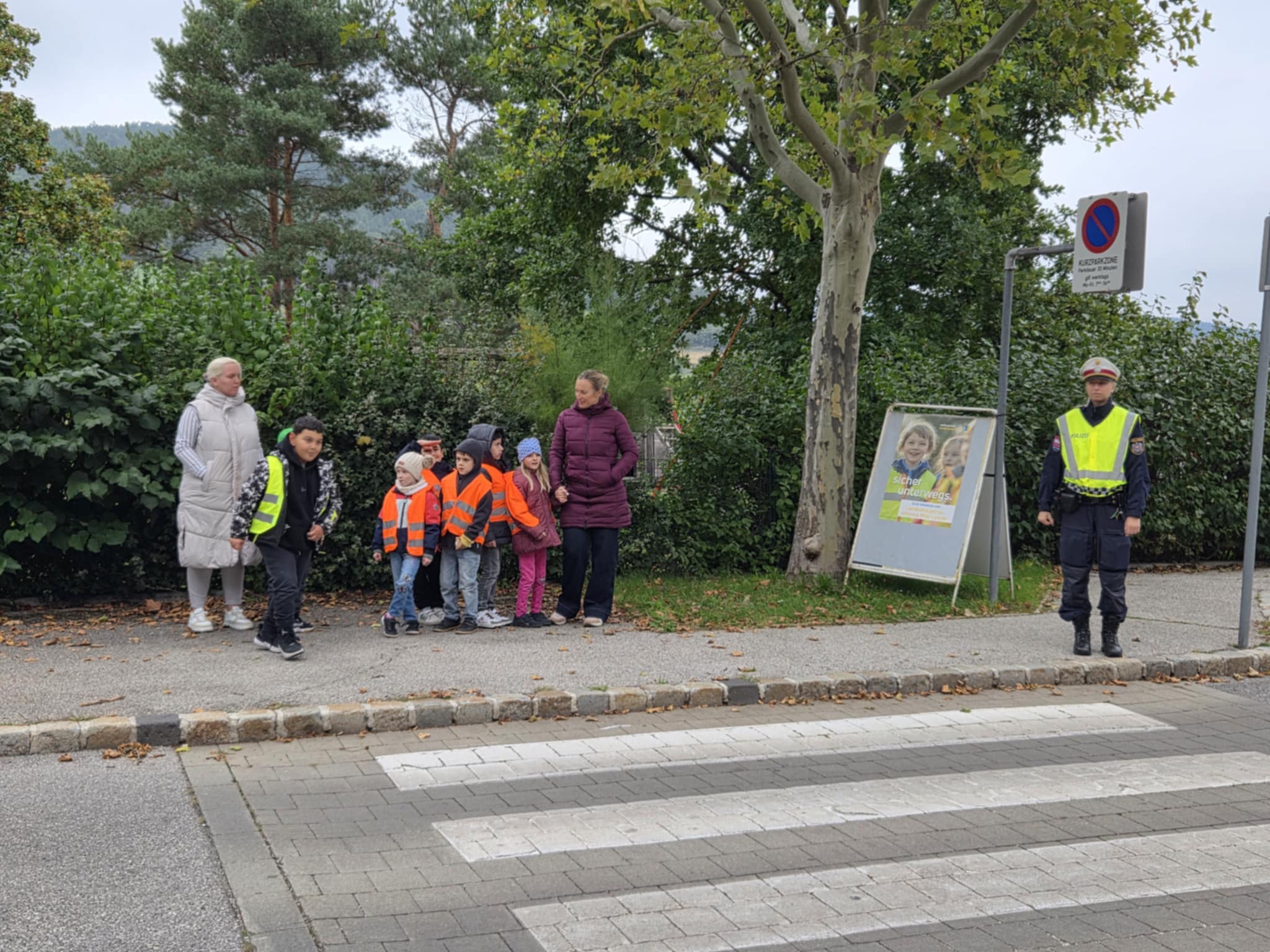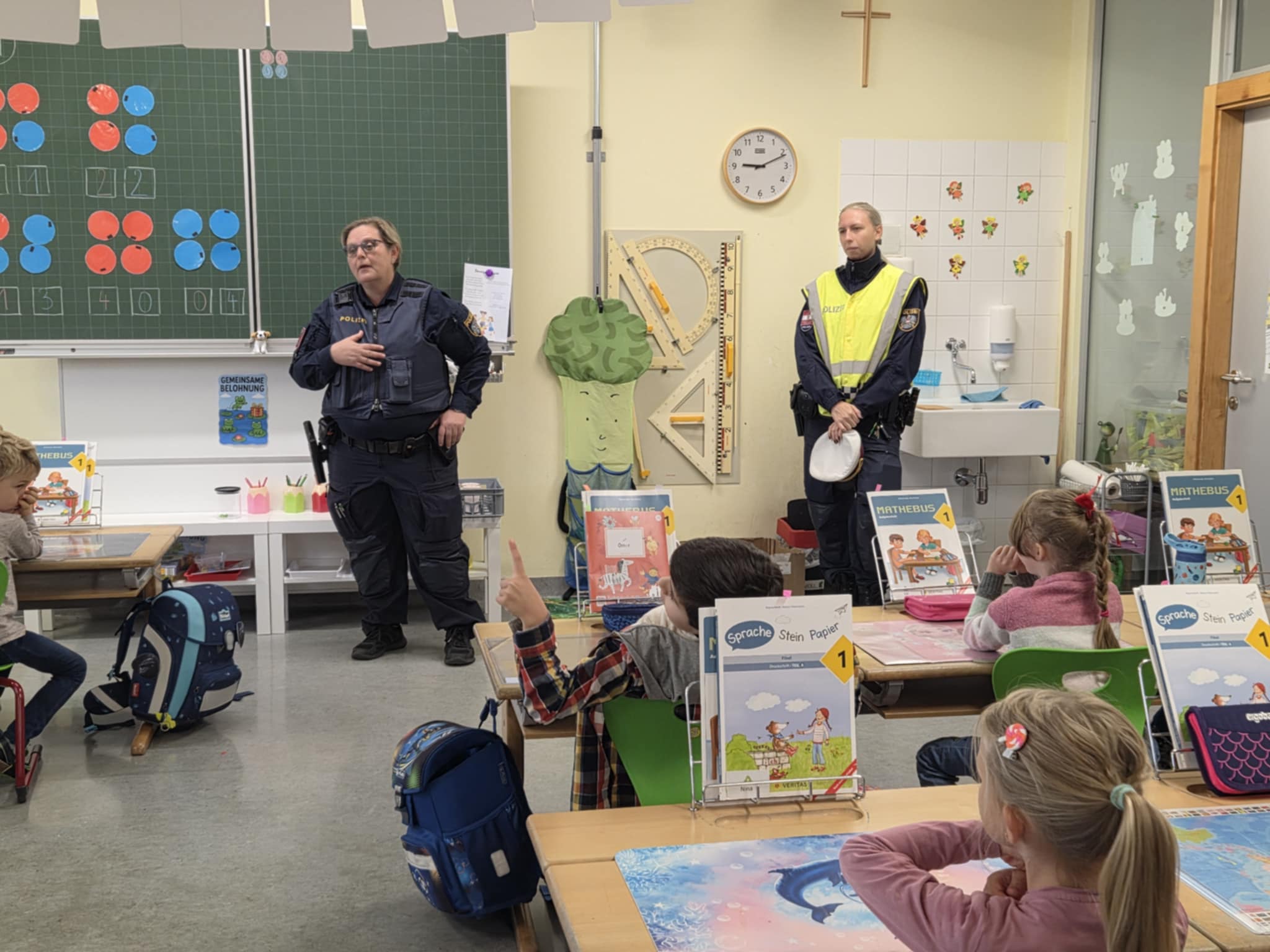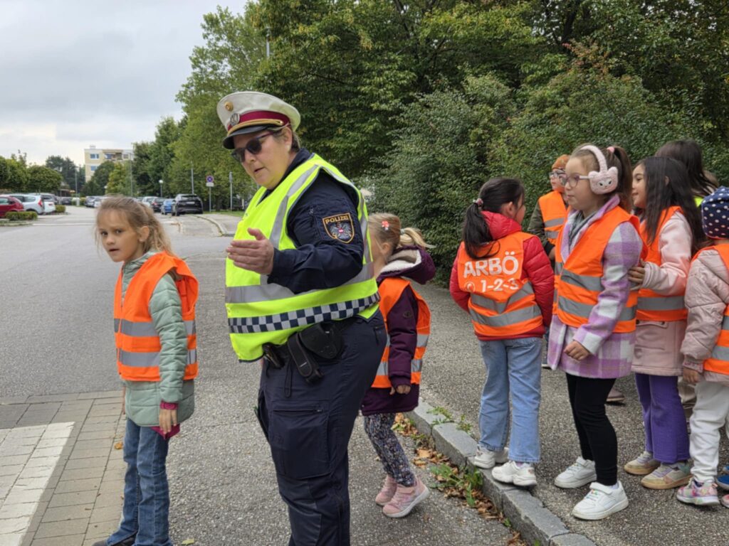 Die Kinder der 1a erhielten am 2.10. Besuch von zwei sehr netten Polizistinnen. Diese zeigten den Kindern, wie man die Straße vor der Schule sicher überqueren kann und die Kinder durften dies auch einzeln versuchen.